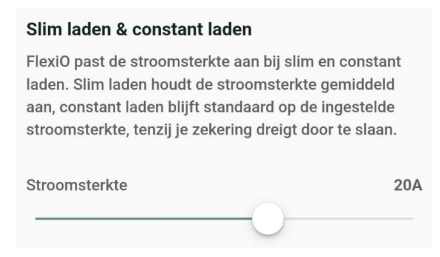 The slider allows the user to set the power from 0 A to the maximum current at which the charger can charge (e.g. 20A).